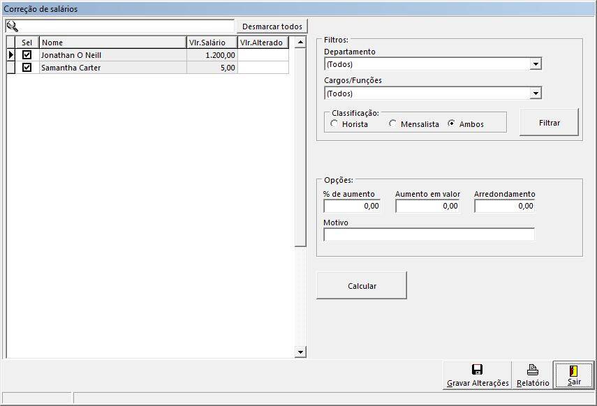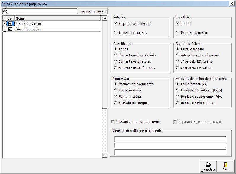 - Folhas mensais, 13 ° salário, adiantamentos;
